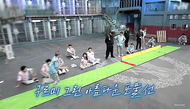 바로 지압판 위에서 멀리뛰기를 한 것인데요, 그냥 서있기만 해도 아픈 이 지압판 위에서 위 이미지와 마찬가지로 뛰어서 날아 올라 착지하기 까지 정말 보는 내내 고통이 전해져 오는 느낌이었습니다. 하지만 엑스원의 김요한과 워너원의 하성운은 각 팀의 명예(?)를 걸고 자존심 승부를 해야 했고, 그에 따라 이를 악물고 경기에 참여하게 됐습니다. 결과는 어떻게 됐냐고요?