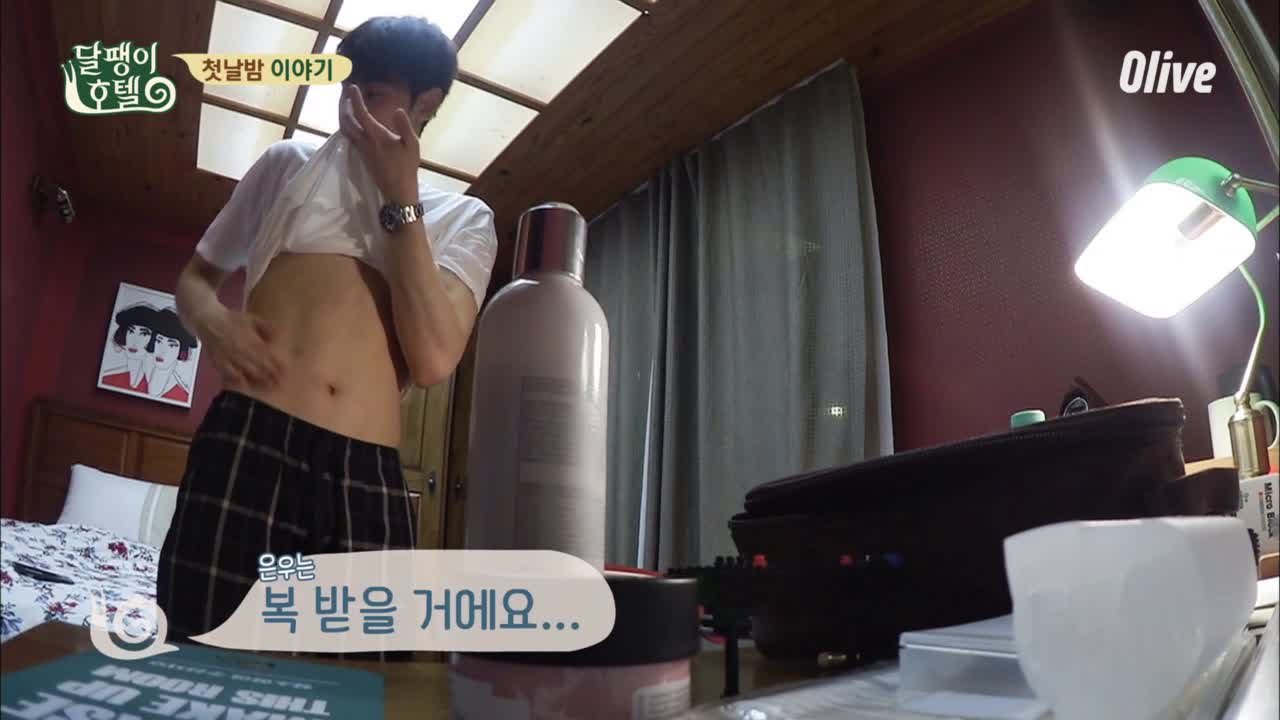 위 이미지는 올리브 달팽이 호텔 출연 당시인데요, 복근에 로션을 바르는 장면이 나와 화제가 됐었죠. 지금도 검색해보시면 클립 영상으로 보실 수 있습니다.