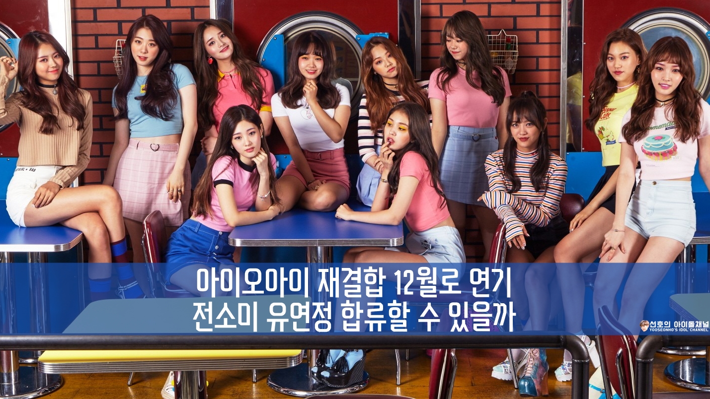 안녕하세요, 선호의 아이돌채널입니다. 오늘은 살짝 아쉽기도 기쁘기도 한 소식을 알려드리려고 합니다. 지난번에 아이오아이의 재결합이 10월로 결정되었다고 말씀을 드렸었는데요, 그게 12월로 연기되었다고 합니다. 사실 10월로 예정되어 있었던 아이오아이 재결합은 멤버 전소미와 유연정이 빠진 9인조 재결합이었는데요, 그 때문에 팬들은 조금은 아쉬울 수 밖에 없었습니다.