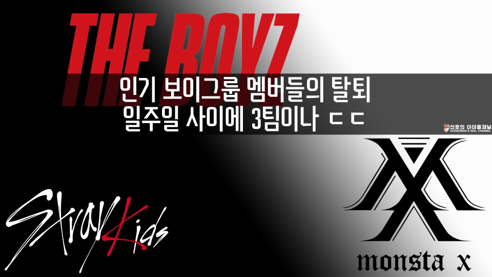 안녕하세요, 선호의 아이돌채널입니다. 오늘은 조금 안타까운 소식들을 전해드리려고 합니다. 최근 일주일동안 무슨일이 있었는지 여러분들은 알고 계시나요? 바로 인기 보이그룹 멤버들의 탈퇴가 연이었습니다. 일주일 사이에 무려 3팀이나 그랬는데요, 아마 K-POP 역사상에서 이런 적은 없었지 않나 싶을 정도입니다. 과연 그 멤버들은 누구인지 함께 알아보도록 하겠습니다.