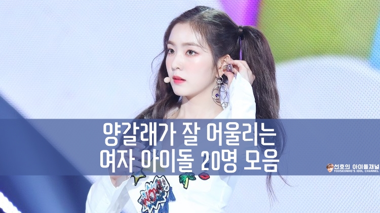 안녕하세요, 선호의 아이돌채널입니다. 오늘은 여러분들께 양갈래가 잘 어울리는 여자 아이돌들을 소개해드리려고 하는데요, 총 20명입니다. 양갈래라 함은 걸그룹 멤버들의 귀여움을 배가될 수 있는 헤어스타일링으로 머리를 두 쪽으로 나누어 묶는 것을 말하죠. 바로 썸네일 속 아이린의 헤어스타일링이 그 예 입니다. 과연 아이린 이외에도 어떤 여자 아이돌들이 양갈래가 잘 어울리는지 저와 함께 보시도록 할게요.