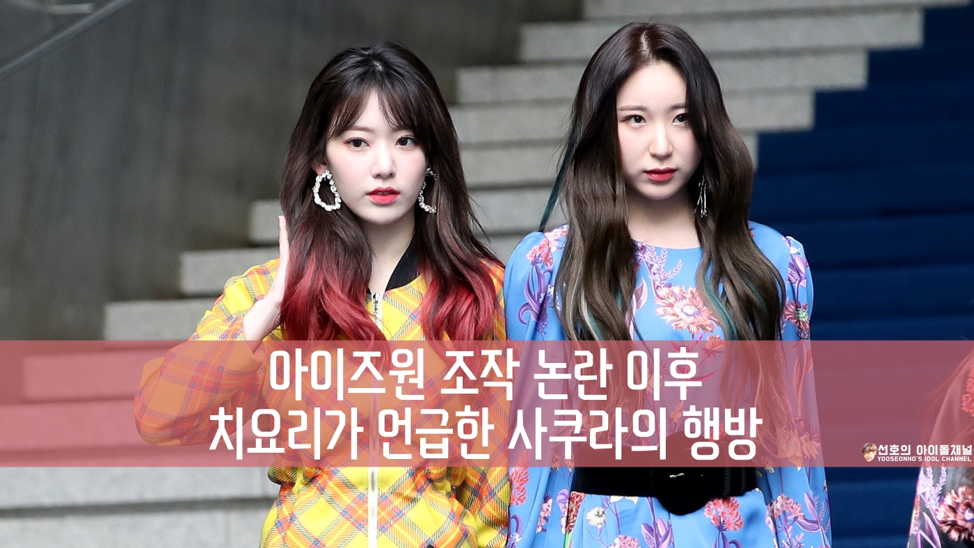 한 기사에 따르면 아이즈원 멤버들은 대부분이 숙소가 아닌 자택에 있다고 합니다. 한국인 멤버들은 그렇다 치더라도 문제는 일본인 멤버들(사쿠라, 나코, 히토미)이죠. 현재의 논란 속에 공항을 통해 고국인 일본으로 돌아갔다면 분명 기사가 떴을텐데요, 아직까지는 그러한 소식은 들리지 않고 있습니다. 이에 따라 팬들은 일본인 멤버들이 아직 한국에 머무르고 있다고 생각하고 있었는데요, 그 와중에 프로듀스48 출신 나카니시 치요리가 개인방송으로 사쿠라를 언급하면서 화제가 되고 있습니다.