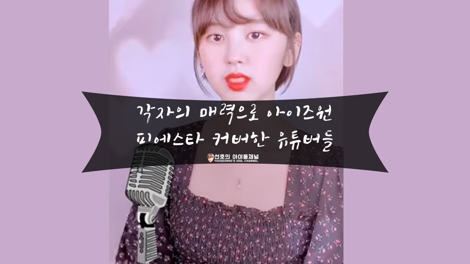 안녕하세요, 선호의 아이돌채널입니다. 오늘은 여러분들과 각자의 매력으로 아이즈원의 피에스타를 커버한 유튜버들을 만나보려고 합니다. 아이즈원의 이번 신곡 피에스타의 인기가 어마어마한 사실 다들 알고 계시죠? 이 때문인지 벌써부터 많은 분들의 커버 영상을 올려주시더라구요. 대표적으로는 보컬 커버와 댄스 커버가 있을텐데요, 그 중 보컬커버는 앤씨아님의 영상을 꼭 한 번 보셨으면 좋겠습니다. 혼자 12인분을 다 하시는데 불편한 기색없이 완창하시더라구요. 역시 보컬의 대가인 것 같습니다. 지금부터는 조금 색다른 커버들을 만나보실텐데요, 함께 보시죠.
