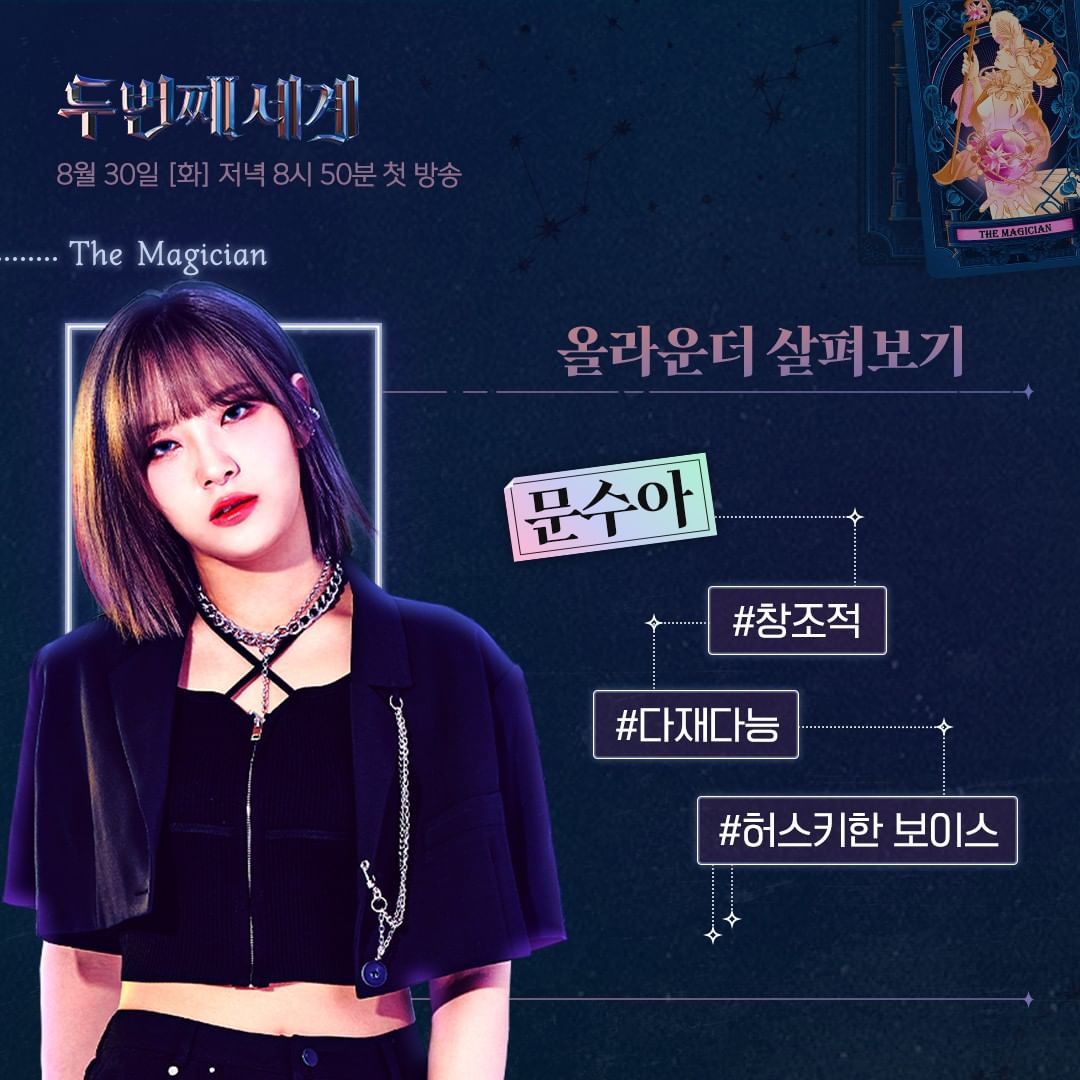 안녕하세요, 아이돌채널입니다. 오늘은 JTBC에서 새롭게 방영하는 서바이벌 프로그램 두번째 세계의 라인업을 소개시켜드리도록 하겠습니다. 먼저 두번째 세계가 어떤 서바이벌 프로그램인지 알려드리겠습니다. 두번째 세계는 걸그룹 래퍼들의 보컬 전쟁을 소재로 한 서바이벌인데요, 실제로 걸그룹 내에서 메인보컬을 맡고 있는 멤버가 나와 주종목인 랩이 아닌 보컬로써 실력을 다투게 된다고 합니다. 꽤나 흥미있는 소재인 것 같은데요, 과연 그 라인업은 어떻게 되는지 함께 보시죠.