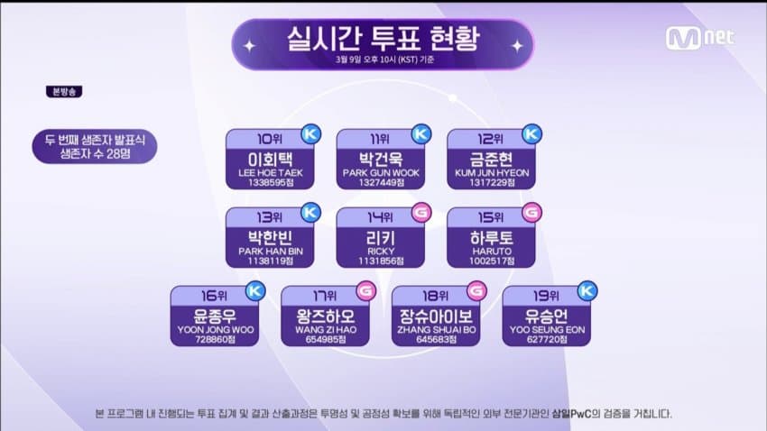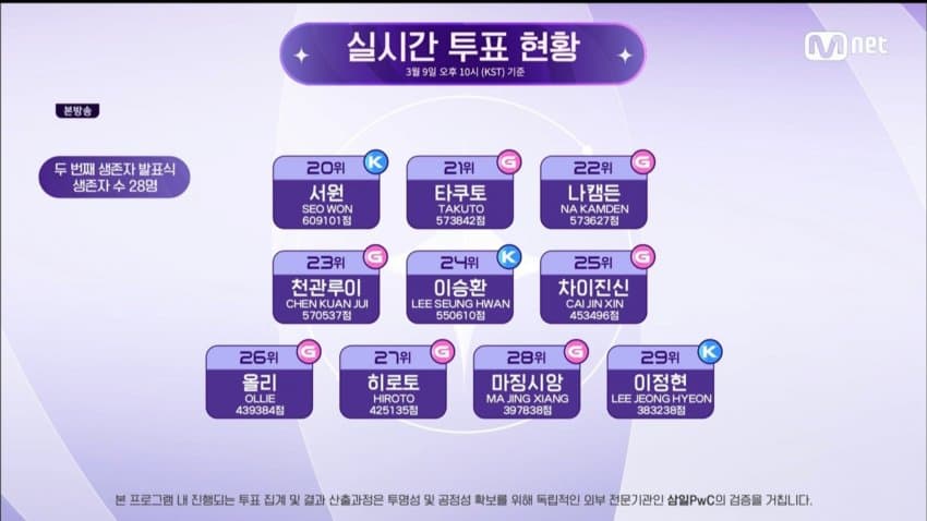 | <속보> 보이즈 플래닛 두 번째 생존자 발표식 순위 1위부터 28위까지 (0) | 2023.03.23 |