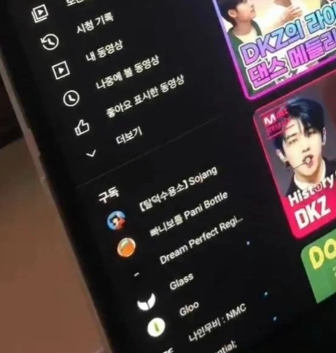 그런데 그러한 채널을 구독하고 있는 남자 아이돌이 있었습니다. 바로 DKZ의 멤버 재찬입니다. 때는 DKZ 재찬이 V LIVE를 통해 실시간으로 팬들과 소통하고 있을 때였습니다. 재찬은 V LIVE 도중 카메라를 자신의 노트북으로 돌렸는데요, 그 때 나온 노트북 화면이 유튜브였습니다. 아래 사진과 같이 유튜브에 로그인을 하면 구독하고 있는 채널들이 좌측에 나오게 되어 있는데요, 재찬의 구독 목록에 탈턱수용소가 있었던 것이죠.