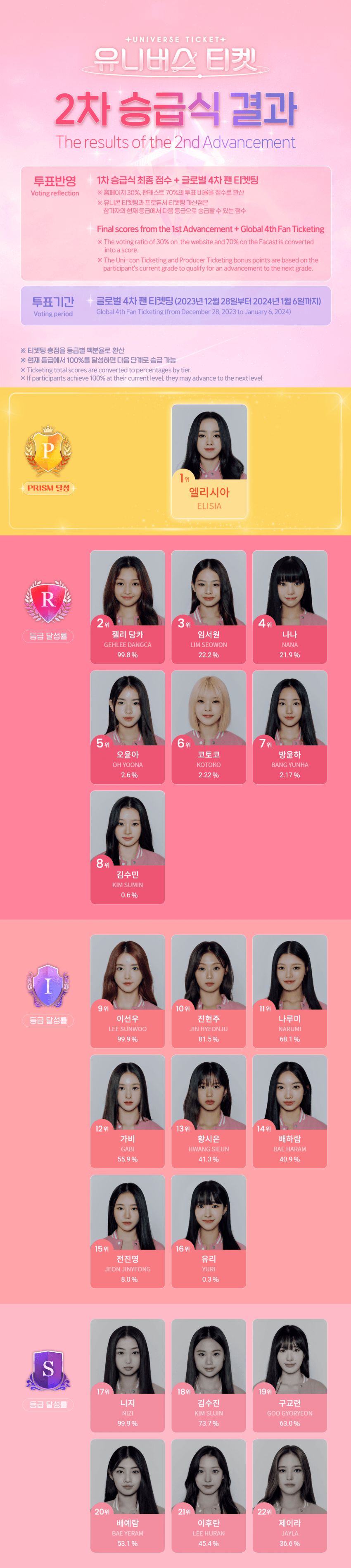 오늘 유니버스 티켓에서 최종 데뷔 멤버 1인이 공개되었습니다. 바로 PRISM 등급에 달성한 필리핀 참가자 엘리시아입니다. 임서원이 가장 먼저 데뷔를 확정지을거라는 모두의 예상을 뒤집은 결과인데요, 아무래도 해외 팬들의 의견이 상당 수 반영된 것으로 짐작이 됩니다.